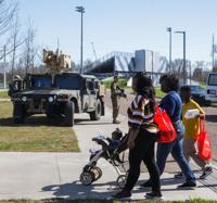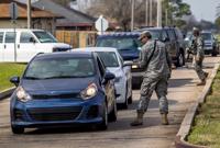 The Louisiana National Guard controls access on Bundy Road to tornado-damaged areas Wednesday, Feb. 8, 2017, after a tornado ripped through the neighborhood Tuesday in New Orleans East.