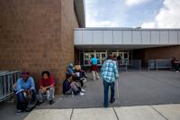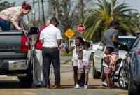 People get fresh air at a shelter set up at Joe Brown Park Wednesday, Feb. 8, 2017, after a tornado ripped through New Orleans East on Tuesday. Former LSU running back Leonard Fournette donated 20,000 bottles of Life10 Electrolyte water for tornado victims.