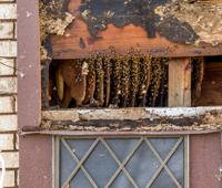 Tornado damage reveals a large bee hive inside a home in New Orleans East Wednesday, Feb. 8, 2017, after a tornado ripped through the neighborhood Tuesday.
