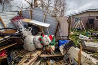 Christmas items sit in Glen Wilson's destroyed storage shed at his home on Bundy Road Wednesday, Feb. 8, 2017, after a tornado ripped through the neighborhood Tuesday in New Orleans East.