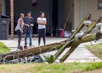 Laverine Porter, left, her husband Lloyd Porter and daughter Loreal Porter watch the cleanup activity on Cerise Street Wednesday, Feb. 8, 2017, after a tornado ripped through the neighborhood Tuesday in New Orleans East.