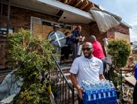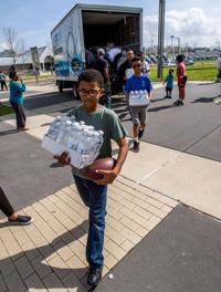 Boys put aside playtime to help unload water at Joe Brown Park Wednesday, Feb. 8, 2017, after a tornado ripped through New Orleans East on Tuesday. Former LSU running back Leonard Fournette donated 20,000 bottles of Life10 Electrolyte water for tornado victims.