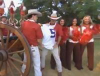 But the intro took a bit of an odd turn when the Texas Silver Spurs fired their cannon, "Smokey," through a Joe Burrow jersey and showed off the shredded threads to the camera.