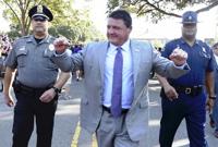 LSU head coach Ed Orgeron, left, and Utah State head coach Gary Andersen, right, meet at midfield after the second half of LSU's football game against Utah State at Tiger Stadium Saturday Oct. 5, 2019, in Baton Rouge, La. LSU won 42-6.